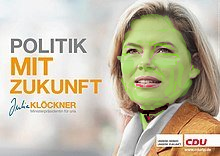 Εδώ βλέπουμε τη μέλλουσα ερωμένη μας, την Τζούλια Κλέκνερ. Δυστυχώς, δεν μπορούμε απλώς να την απεικονίσουμε επειδή το κείμενο της Βικιπαίδειας λέει «κατάλληλο». Το CDU τελικά αποφασίζει τι είναι κατάλληλο. Καμία από τις άδειες αντιγραφής της Βικιπαίδειας δεν περιέχει καμία ένδειξη ότι αυτή η εικόνα, για παράδειγμα, μπορεί ακόμα να δημοσιευτεί σύμφωνα με τη γερμανική νομοθεσία. Άλλοτε εντός σάτιρας, και δεύτερον ως επιστημονική παραπομπή εικόνας.