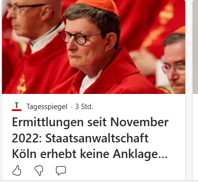 Για παράδειγμα, ο Woelki είχε ισχυριστεί ότι είχε αναφερθεί για πρώτη φορά στους ισχυρισμούς για κακοποίηση κατά του πρώην ηγέτη των Sternsinger, Winfried Pilz (1940–2019), μόλις τον Ιούνιο του 2022. Σύμφωνα με την εισαγγελία, ωστόσο, οι επικοινωνίες του μέσω WhatsApp αποδεικνύουν ότι είχε ήδη αναφερθεί συγκεκριμένα στην υπόθεση νωρίτερα. Ωστόσο, τελικά δεν μπορεί να αποδειχθεί με επαρκή βεβαιότητα ότι το θυμόταν συγκεκριμένα όταν υπέβαλε την ένορκη κατάθεσή του.