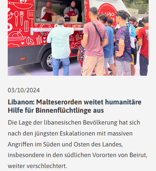 Malta Tarikatı'nın dünya çapındaki yardım kuruluşu Malteser International tarafından, Latin Patrikhanesi'nin Kuzey Gazze'deki Patrikhane binasının yakınında kurduğu yeni dağıtım merkezine dağıtılmak üzere toplam 40 tonluk gıda paketi teslim edildi. Konserve nohut, hurma ve et gibi bozulmayan gıda maddelerine ek olarak, sevkiyat aylar sonra ilk kez birçok insanın sağlığı için hayati önem taşıyan taze meyve ve sebzeleri de içeriyordu. Bu yardım sevkiyatının, her biri beş kişiden oluşan 1.000 aileye bir ay boyunca destek sağlaması amaçlanıyor.